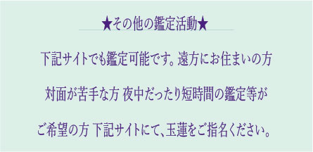 ◆対面鑑定料金 :30分 5,000円 , 60分 10,000円(延長10分/1,500円)